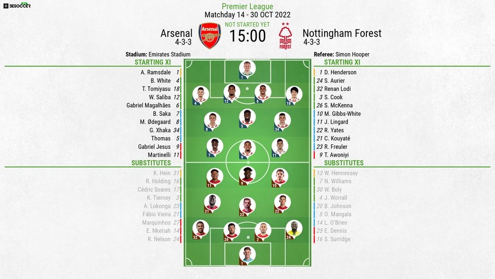 Arsenal vs Nottingham Forest LIVE updates. 1 day agoThe line-ups of Arsenal vs Nottingham Forest have been announced. Nottingham Forest start with Brice Samba in goal and it.